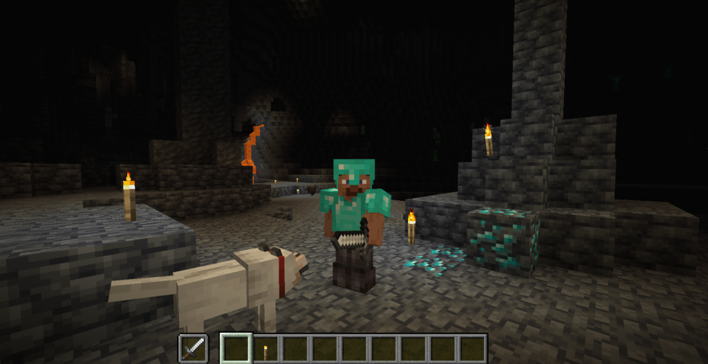 3Dの立方体ブロックで構成された仮想の空間で、ものづくりや冒険を楽しむゲームです。